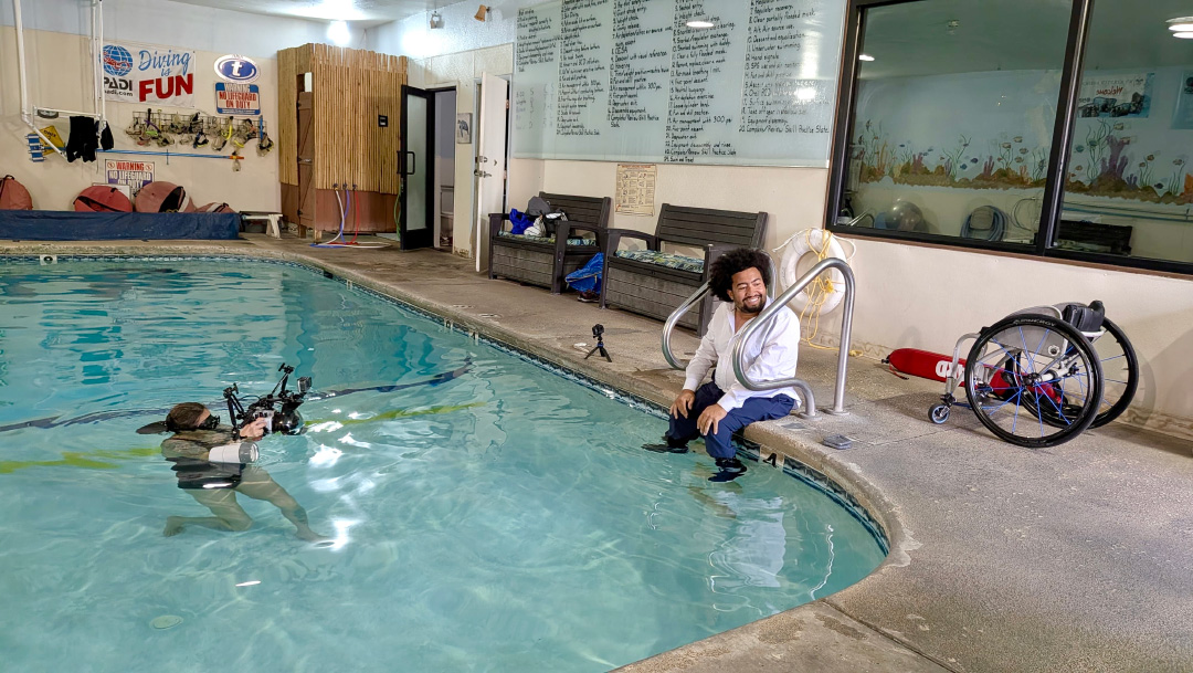 I’ve always loved being in the water, but because of my disability, swimming isn’t easy for me, and I’ve always been afraid of fully going underwater. My main goal was to face that fear in a controlled environment while accomplishing something meaningful. I’m also a sucker for cool photos, so that was definitely a big motivator.
